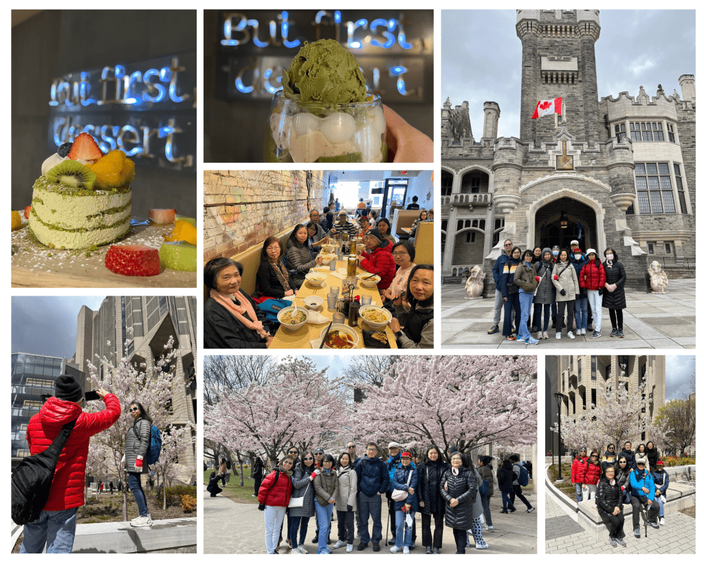 4月20日健行興趣活動小組參觀Spadina Museum 古老大宅和多大圖書館前賞櫻。午膳於大槐樹食麵,下午三時三在甜品工房。全程七小時。