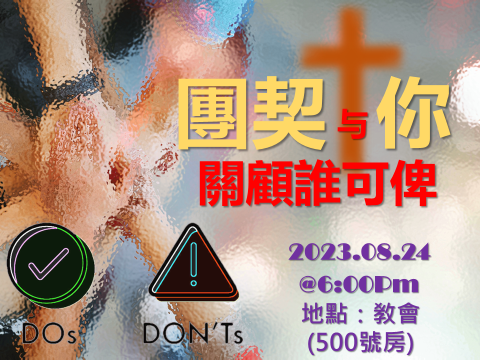 請大家預留時間,於8月24日一同參與我們的聚會。享用大家預備的美筳後,一同學習如何更好地事奉,活出神的心意。