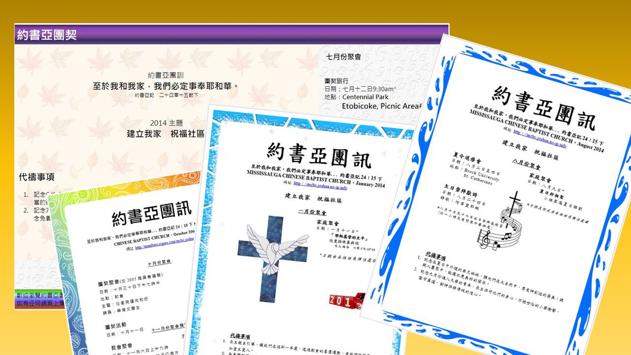 約書亞團訊是我們團契的一個特色,教會、團契及小組活動、弟兄姊妹近況、新朋友介紹、團友心聲、靈修分享、代禱事項等等;它在聯絡團友上作了一個重要的地位。隨著資訊的發達, 通訊形式的改變,團契網站在2004年四月應運而生。然而,新一代的社交媒體,更改了人與人之間溝通的模式,網站的點擊率和團訊的取閱跌至近乎於零,團訊及網站於2014年八月後便全面停辦。